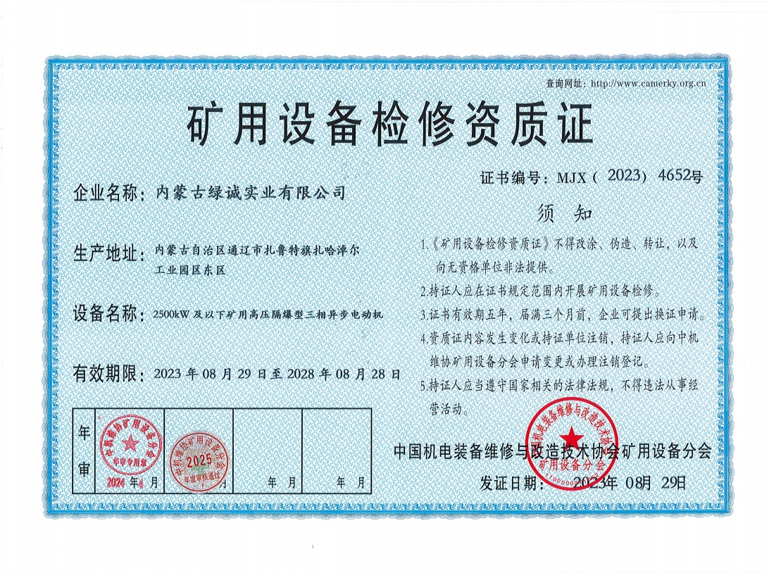 內蒙古緑誠實業有限公司于2014年4月成立,公司地址位于扎魯特旗扎哈淖爾工業園區東區。現有辦公樓2700平方米,新型專業化生產維修車間5500平方米,我公司是與中國中車集團的襄陽中車電機技術有限公司技術合作成為現代化大型機電設備檢修公司及維修為一體的公司,贏得了各個企業的支持與信賴。